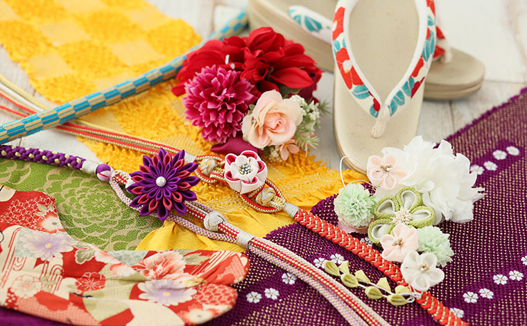 仕上げは髪飾りや小物のアレンジ。髪飾りは成人式というお祝いの席にふさわしい紅白を取り入れたものや、着物・帯との色の調和がとれるものを選びましょう。帯締めや帯揚げはかわいい飾りや色で流行を取り入れましょう。