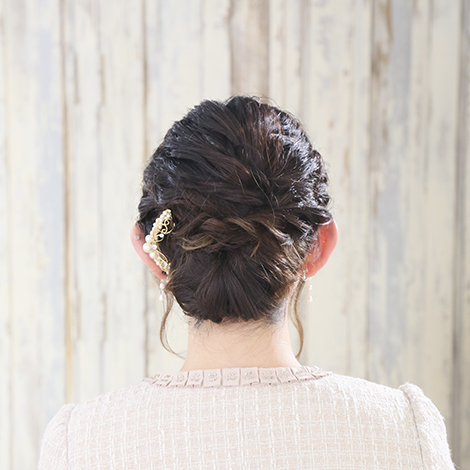 洋装の場合、和装と同じくまとめ髪も似合いますが、ダウンスタイルでもフォーマルな雰囲気を出しやすいことが特徴です。ダウンスタイルにする場合、サイドをまとめるとカジュアルになりすぎず、すっきりと見せられます。ハーフアップや編み下ろしなどのナチュラルなスタイルもおすすめです。