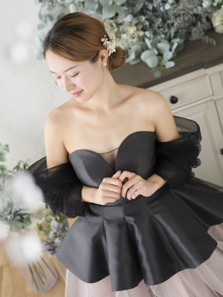 ペプラム×チュールを組み合わせれば、一気に主役感が高まるドラマティックな雰囲気に。