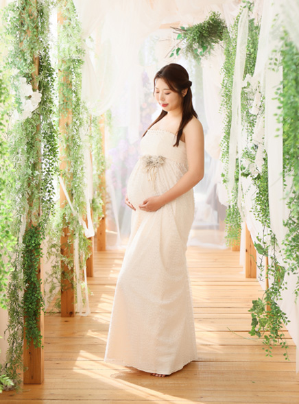 個室スタジオだからママの体調に合わせ安心して撮影をお楽しみいただけます。妊娠中の今だからこそ撮影できる、美しく輝いている瞬間を写真に残してみませんか?