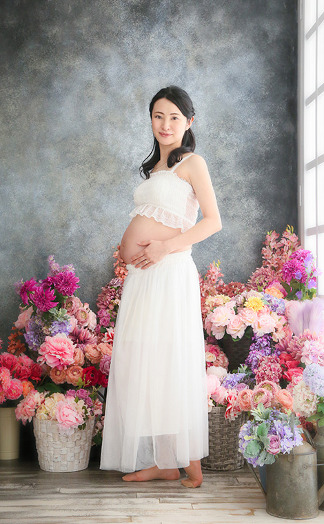 マタニティフォトを撮影するか悩んでいる理由で多いのが「お腹を見せるのに抵抗がある」という意見。以前はお腹を見せるマタニティフォトが定番でしたが、お腹をみせない衣装のバリエーションもたくさんあるのでご安心ください!自分らしいマタニティフォトを残してくださいね。