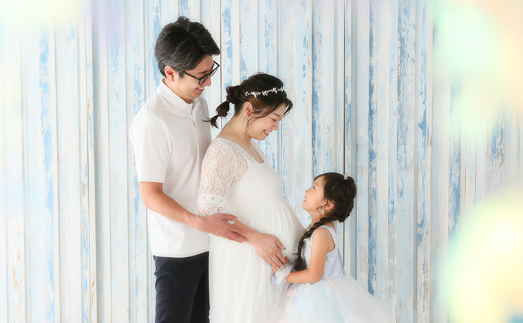 新しい家族が増える家族の歴史を残すマタニティフォトは、パパやきょうだいもぜひ一緒に撮影しましょう!写真が苦手な恥ずかしがり屋のパパは、目線を外してみたり、会話している自然な姿を撮影したり、手だけの参加でも素敵なマタニティフォトを撮ることができますよ。