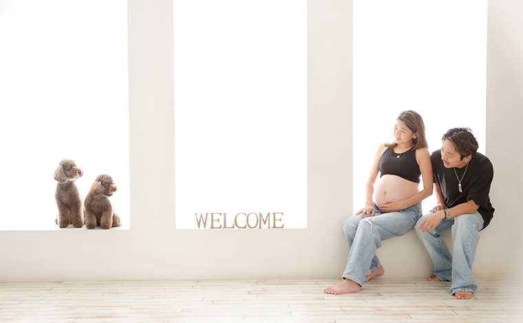 赤ちゃんの誕生を楽しみにしているのは大切な家族の一員であるペットも同じなはず。一緒に撮影して幸せな家族の瞬間を記念に残しましょう。スタジオで撮影する場合は、ペット撮影が可能かどうかや、撮影時の注意点をしっかり確認しておきましょう。