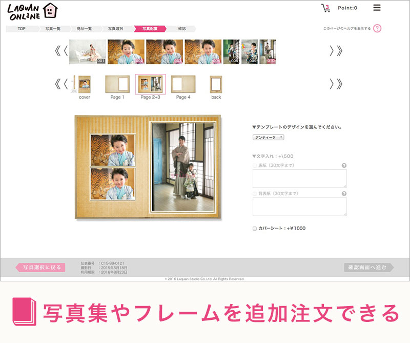 撮影した写真をご自宅でご覧いただき写真集・フレームなどの商品を注文できるサービスです。