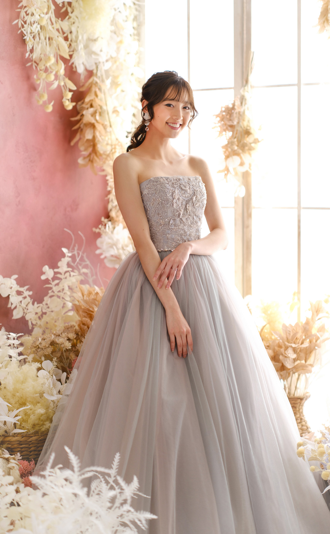 カラードレスは定番のパステルから流行のくすみカラーまでご用意。思い切っていつものお洋服ではあまり選ばないカラーに挑戦するのもおすすめです。