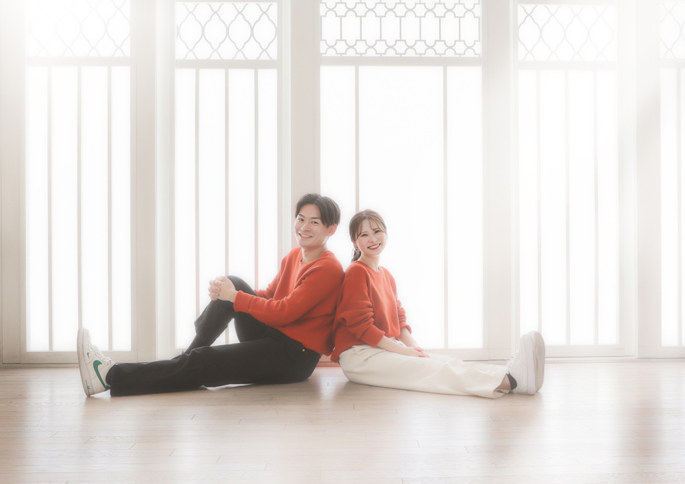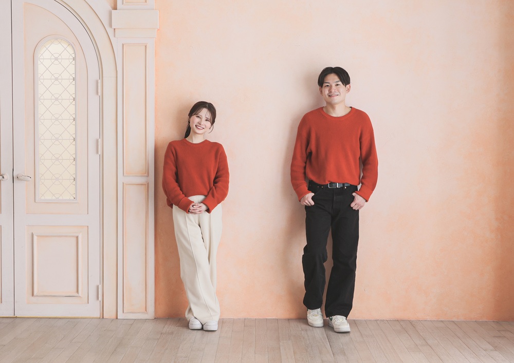 私服で普段通りのカジュアルな姿や、仲睦まじい様子を撮影いたします。衣装のテイストを合わせてペアルックでの撮影もおすすめ。