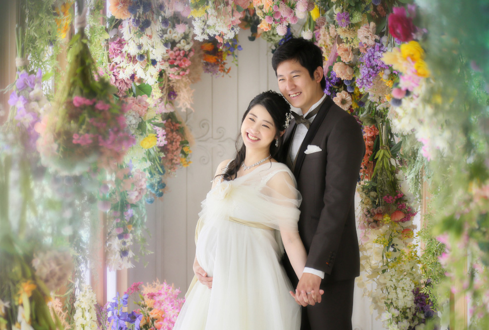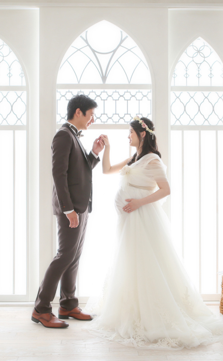 純白のドレスもカラードレスも、マタニティでも安心して着用できるドレスをご用意しています。また、和装のお着付けも可能です! マタニティでも、一生の記念にこだわりの衣装で写真を残しましょう。