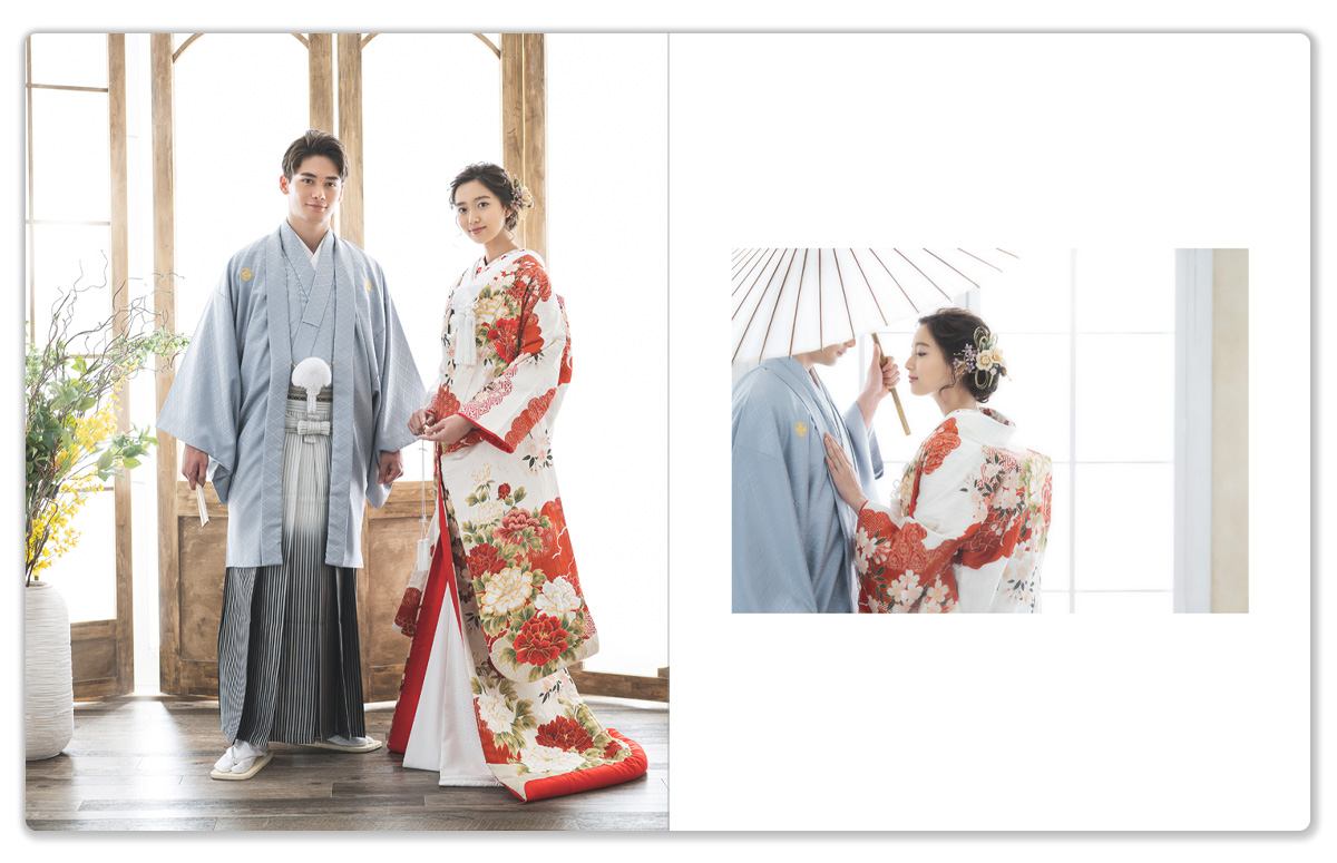 気品を感じる写真づくりと、品質の良いアルバムにこだわっています。記念写真をいつまでも美しく残しておくために、商品は素材を厳選し一冊一冊手作業で制作しています。お客様の宝物となるアルバムは、お客様の想いと、私達の想いの合作です。