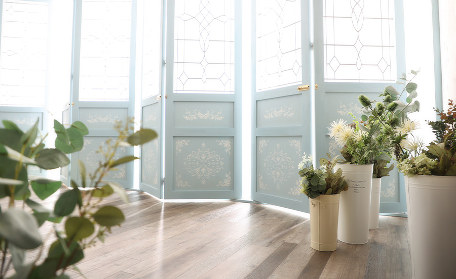 - 色鮮やかな花に囲まれた背景でナチュラルな撮影がおすすめ!