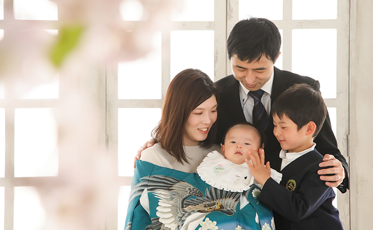 また、神社やお寺には動きやすいカジュアルな服で行き、写真館で衣装をレンタルして記念撮影する、という方法もありますよ。らかんスタジオでは、赤ちゃんの祝い着やベビードレスはもちろん、ご家族用の衣装もレンタル可能です。また、和服の着付けや、ヘアセットなどが付いたプランも選べます。華やかな記念写真を撮りたいときは、ぜひ衣装レンタルのある写真スタジオを活用してみてはいかがでしょうか?